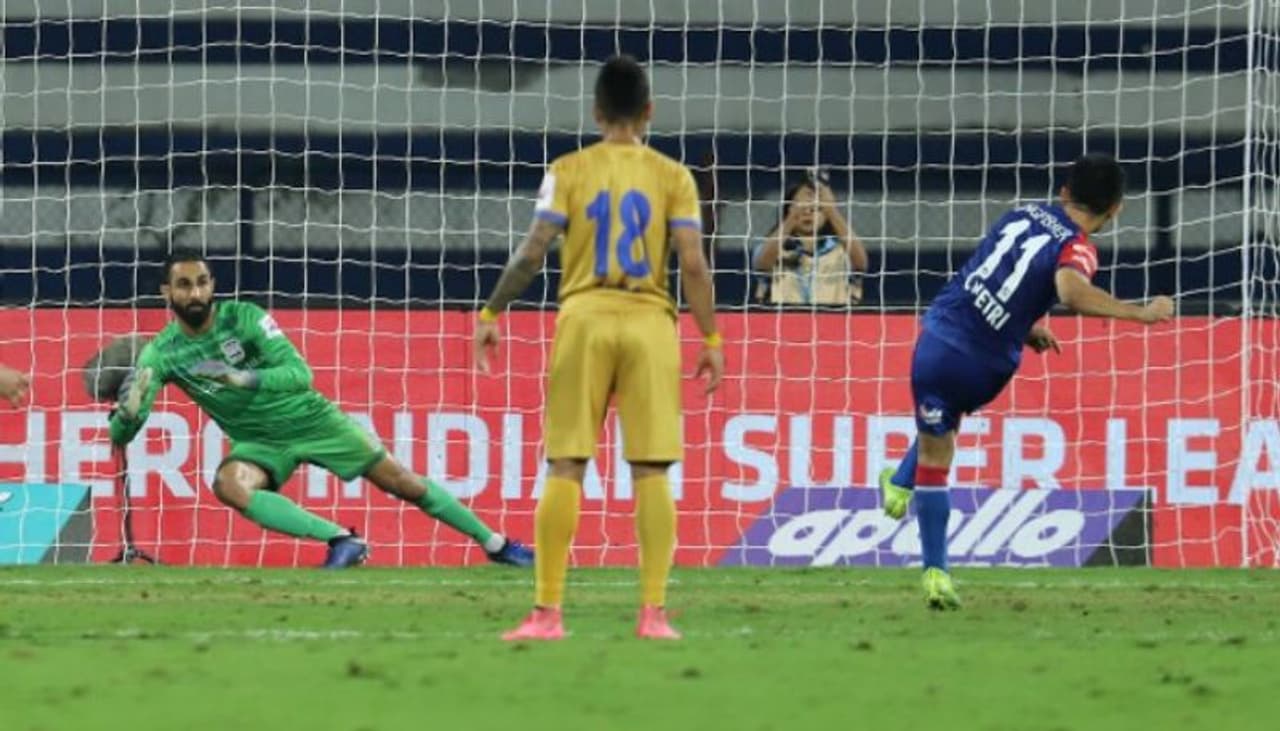 There was late drama as Sarthak Golui handled the ball inside the box and conceded a penalty in the 89th minute. Chhetri stepped up and smashed home from 12 yards to make it 2-2.