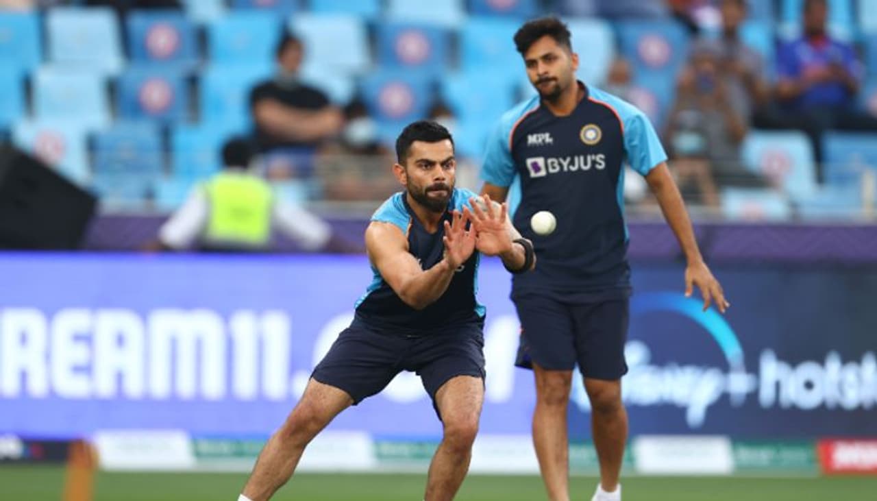 Kohli shared a couple of pictures of the same on his social media handles as he was seen petting the cat on his lap. While the cat sits comfortably on his lap in one photo, it tries to get down in the other. He captioned the images, "A quick hello from a cool cat at practice 😺", while his Bollywood wife, Anushka Sharma commented, "Hello billi (cat) 🙋♀️".