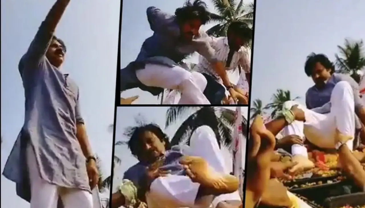 We all know Pawan Kalyan has a huge fan following. Sometimes fans enthusiasm and loves prove to be dangerous for the stars. Likewise, a few days ago, Pawan Kalyan was out for a roadshow when he slipped off his car when a fan tried to hug him.