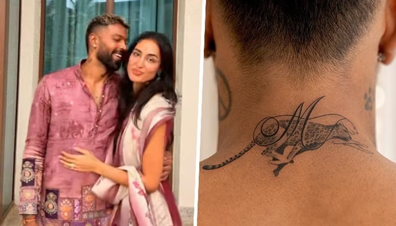 Hardik Pandya, an Indian cricketer, has made Valentine's Day extra special for his ladylove Mahieka Sharma. He inscribed his girlfriend's initials 'M' on the back of his neck. Celebrity tattoo artist Sunny Bhanushali created the artwork at Aliens Tattoo, which was done by main artist Tushar Marane. It offers a very personal tale about love, identity, and arelationship with Mahieka.