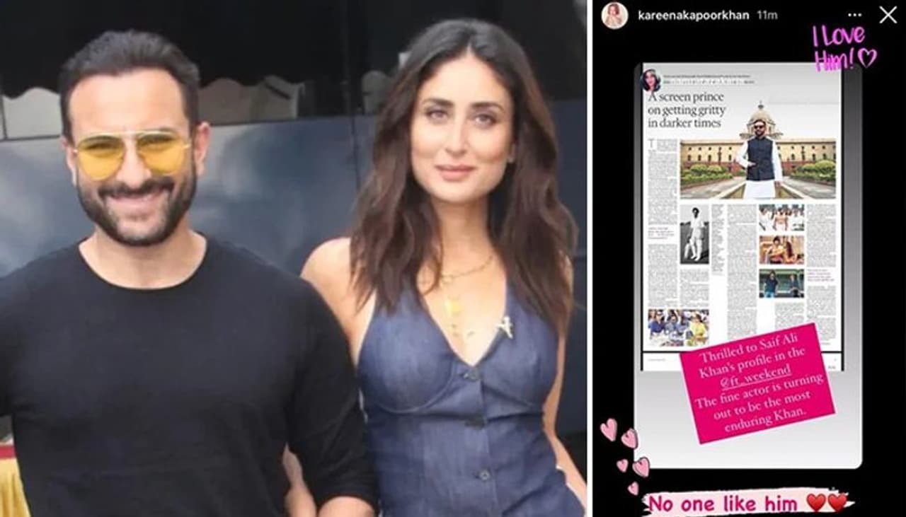 His wife, Kareena Kapoor Khan, reacts to a journalists comment on social media, who says, "Thrilled to see Saif Ali Khan's profile in the @ft_weekend, the fine actor is turning out to be the most enduring Khan". While that's true and for no one to disagree, Kareena is all heart for her husband and says there's 'no one like him'.