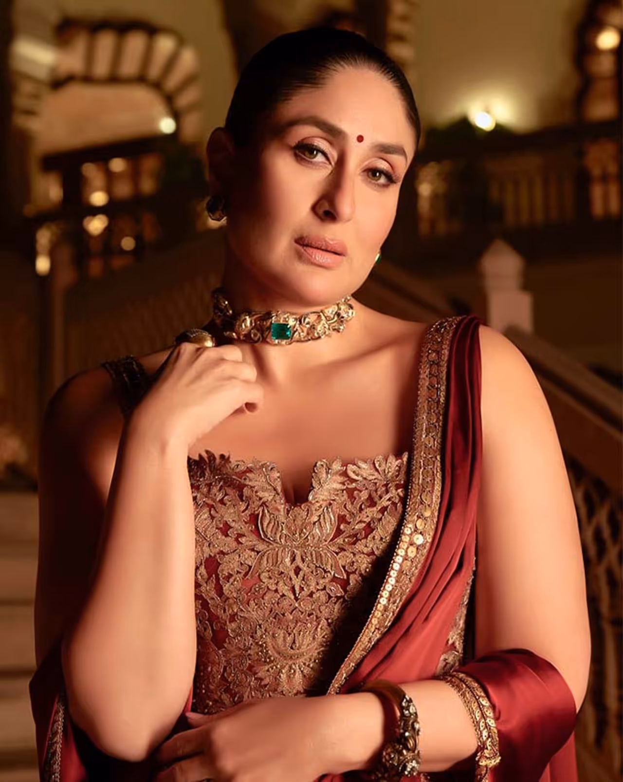 Kareena's outfit went perfectly in sync with the background where she posed and also the minimal lights around her enhanced her beauty to another level. Her charm and elegance added to her royal color outfit with the background, this has become the dream outfit of poo's fans.