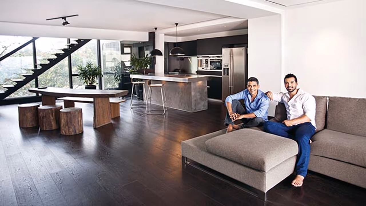 John Abraham’s sea-facing penthouse, named Villa in the Sky, is valued at ₹60 crore. The stunning space was thoughtfully designed by his architect brother, Alan Abraham, blending style with sophistication.