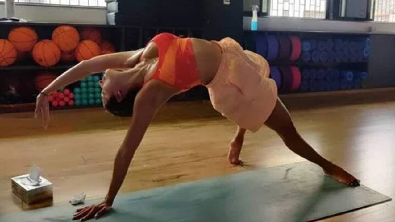 Malaika demonstrates tough exercises and teaches proper yoga techniques to her followers.