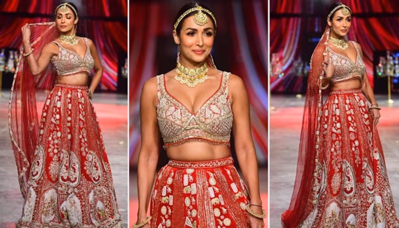 Yes, Malaika Arora was seen wearing a red lehenga with golden work as she walked the ramp for Annu’s Creation in the most beautifully designed bridal attire. Also Read: Want to be toned and fit like Malaika Arora? 5 tips to learn from fitness queen