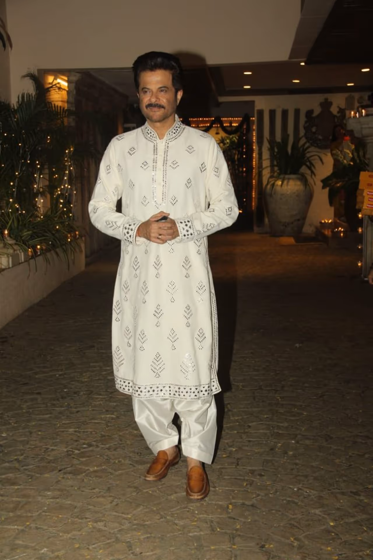 The host of the party, Anil Kapoor looked dapper in a crisp white kurta-pajama. Anil hosted the Diwali party at his residence for his friends and family from the industry. The Diwali party was all the more special for him since it was the first Diwali after his daughter Rhea Kapoor’s recent wedding.