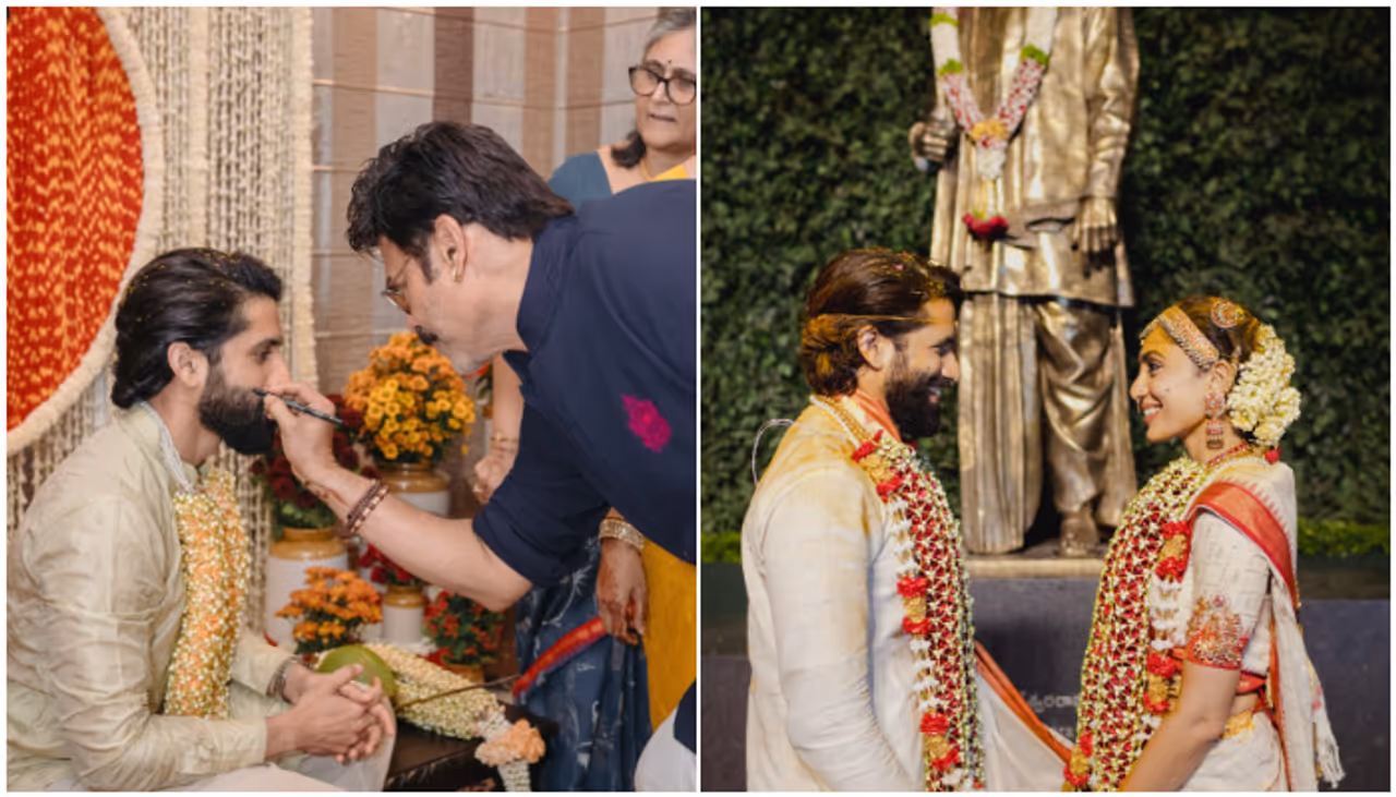Naga Chaitanya and Sobhita Dhulipala's wedding brought together the Akkineni and Daggubati families. Actor Venkatesh Daggubati shared moments from the pre-wedding Pellikoduku ceremony, where he applied an evil-eye mark to Chaitanya, symbolizing family love and traditions