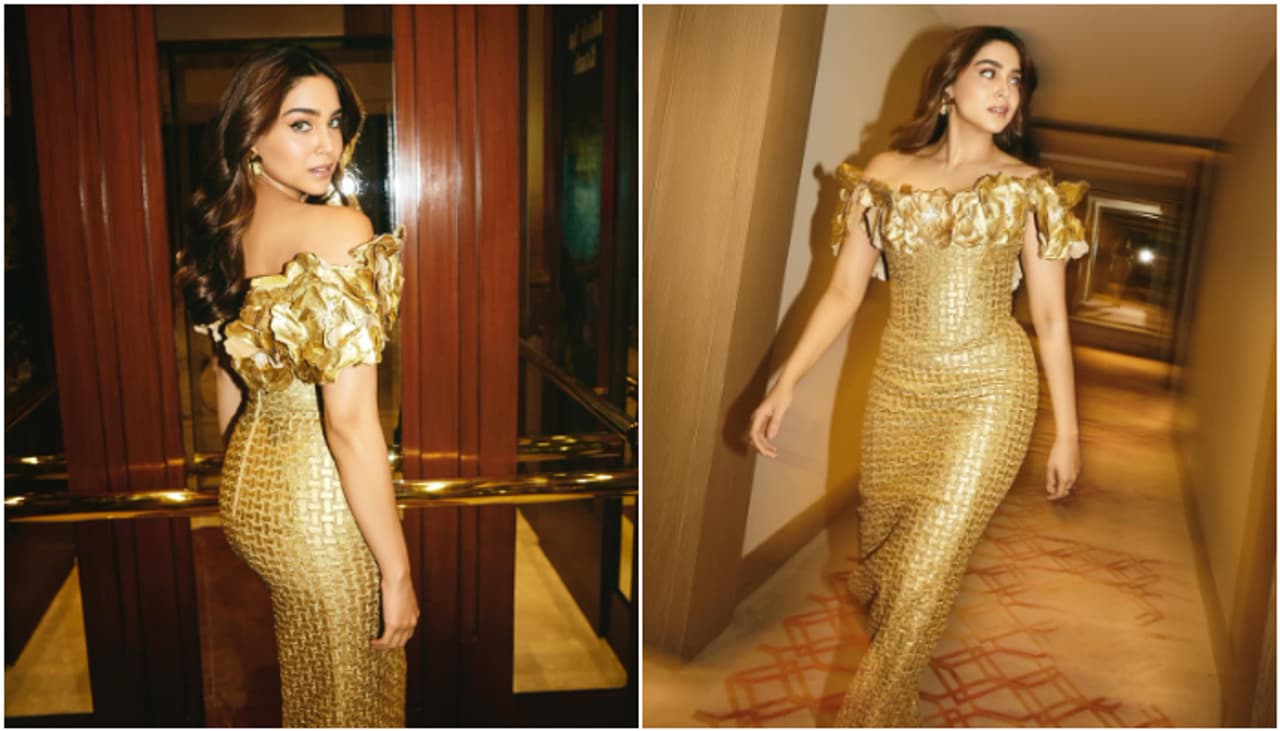 (PHOTOS) Sharvari Wagh shines in a golden off-shoulder gown