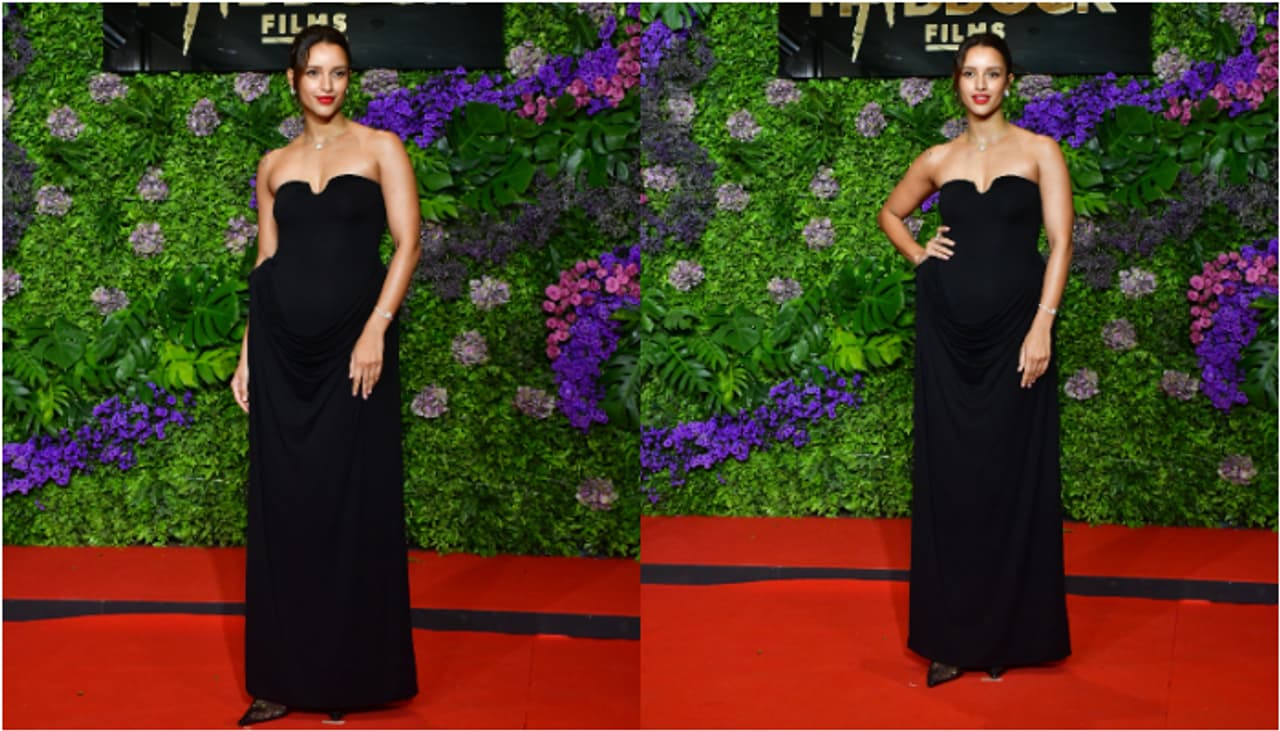 Triptii Dimri who was recently celebrated as the 'national crush,' faced criticism from the internet’s fashion police for her outfit at the Maddock success bash in Mumbai. She walked the red carpet in a strapless black gown featuring ruffles and folds around the waist. However, instead of enhancing her figure, the dress gave her lower body a bulky appearance. She completed her look with delicate accessories, bold red lipstick, and a casual bun.