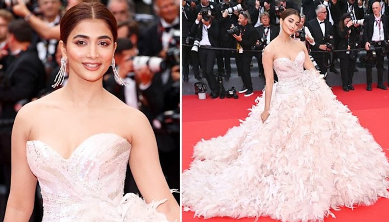 Pooja Hegde dons feathery strapless pink gown at Cannes 2022; see pictures