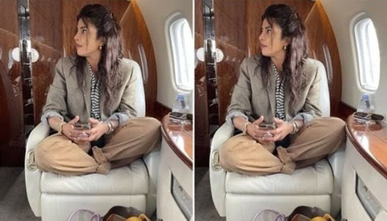 Priyanka Chopra goes 'desi', sits cross-legged in private jet, pic goes viral