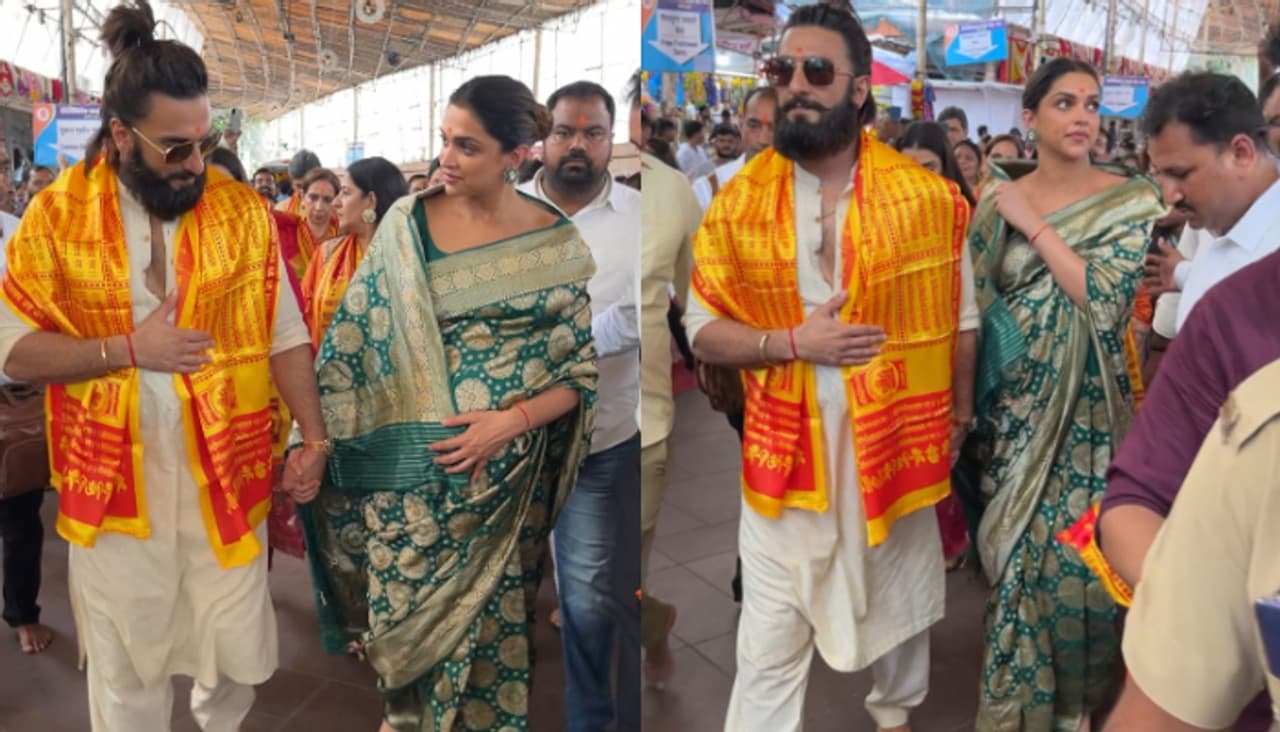 Deepika Padukone finished off her ensemble with earrings. She discretely concealed her pregnancy bump beneath the pallu of her saree. Videos of the couple's visit to the temple are widely circulated online. The couple may be seen strolling toward the temple. Deepika was spotted greeting people outside the temple. Ranveer followed his wife and greeted everyone around them. He then carefully led Deepika inside the shrine walking hand-in-hand.