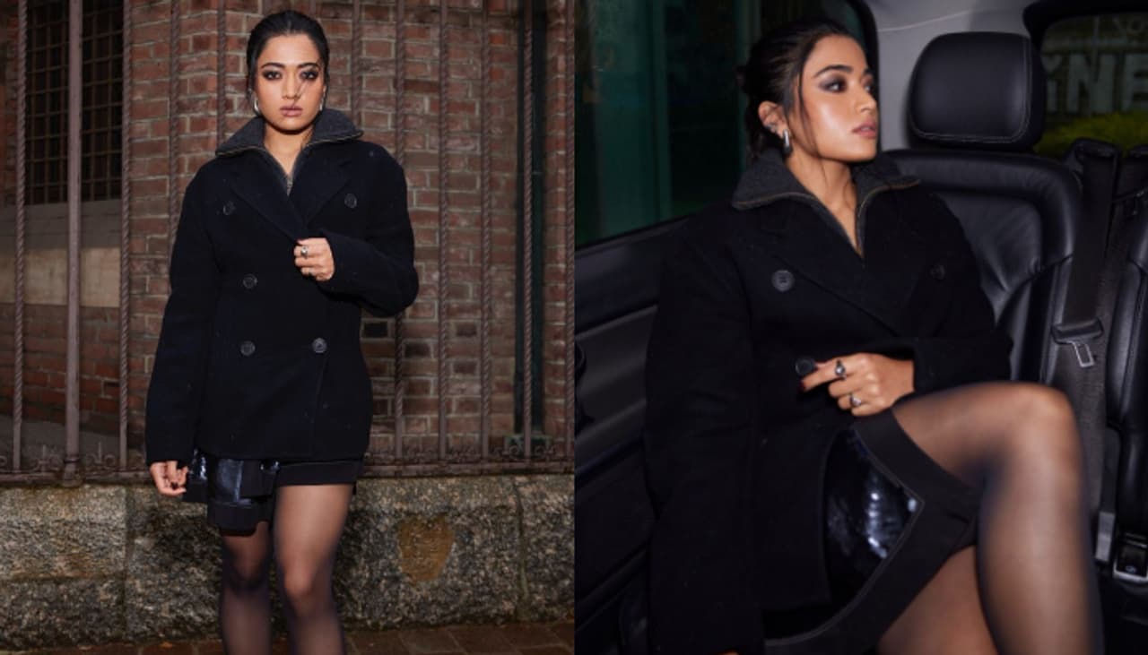 Rashmika Mandanna dressed for the Onitsuka Tiger Spring-Summer 2025 campaign in pieces from the brand's Autumn Winter 2024 collection. The actress was seen wearing a head-to-toe black suit that gave her a ferocious appearance. She donned a double-breasted black trench coat sequin dress with a zipped front.