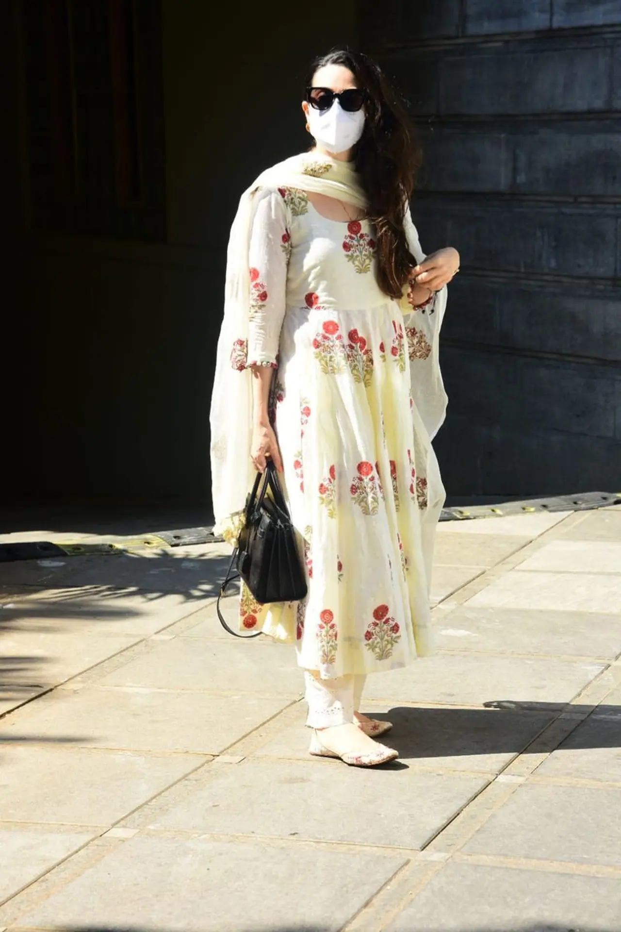 Stepped out in a desi avatar, Karishma Kapoor looked every bit of a stunner in a lime Anarkali suit with hand block printing. Karishma’s style has been one of the favourites of the fashion police in town.