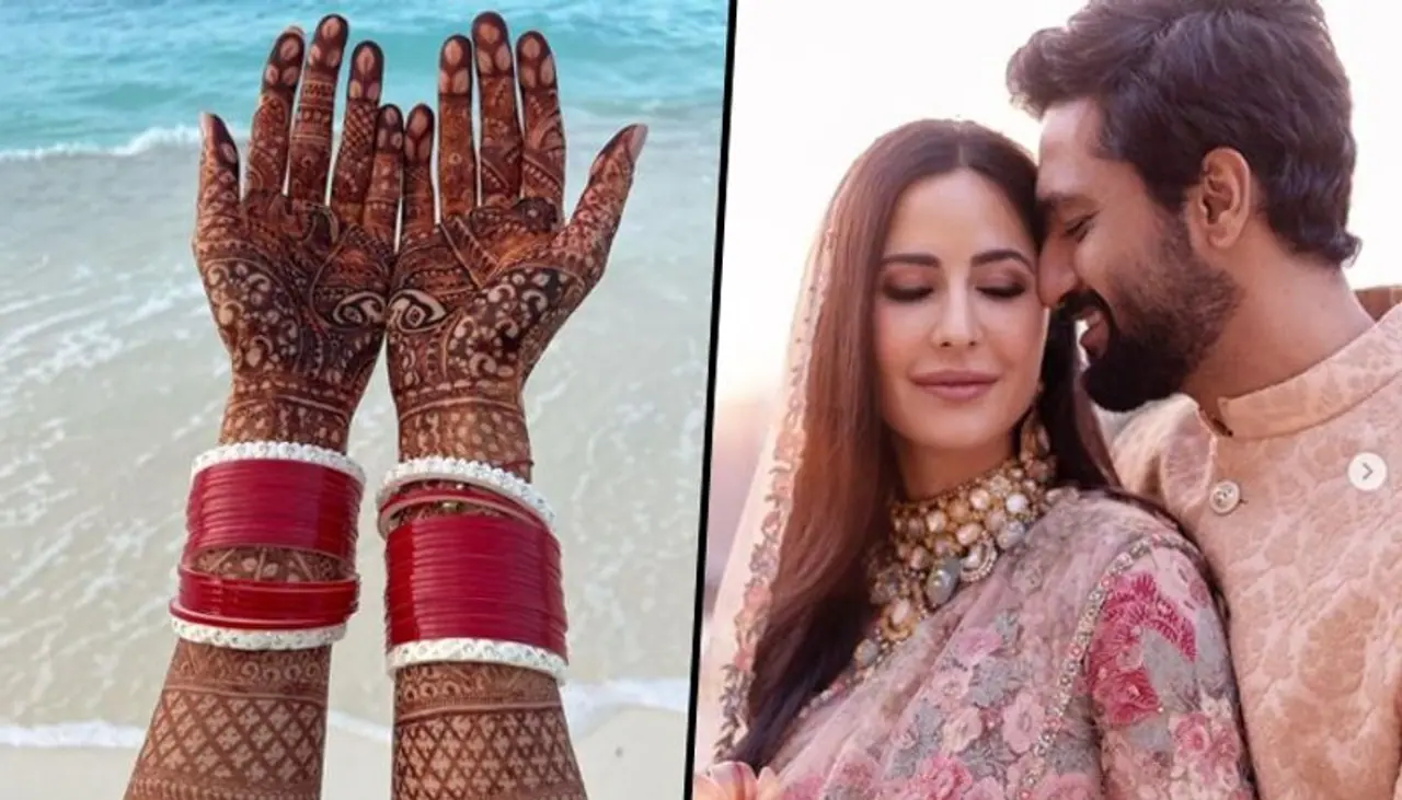 Newly wedded Katrina Kaif has posted the first photo from her honeymoon diaries. In the photo, she is seen flaunting her wedding mehendi and chooda. The actress got married to Vicky Kaushal on December 9, and it looks like the pair has taken off to a beach destination for their honeymoon after getting married in Rajasthan.