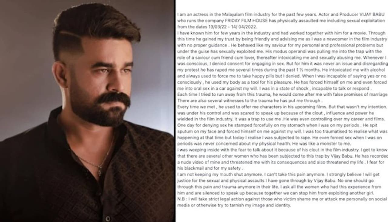 Malayalam actor Vijay Babu: Actress says, "He intoxicated me with alcohol, raped me several times"