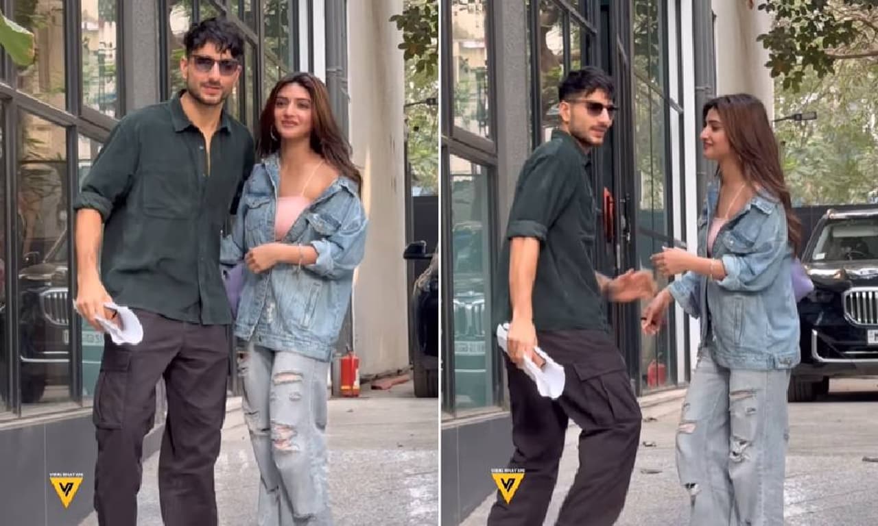 Ibrahim and Sreeleela were seen leaving the office and posing for the photographers together. Ibrahim also performed the hook dance to Sreeleela's song 'Kissik' from 'Pushpa 2'.