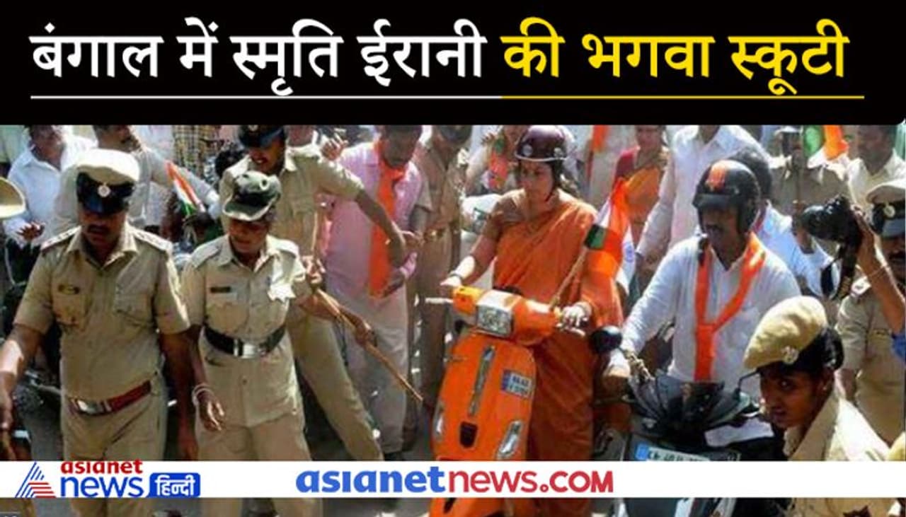 Smriti Irani rides scooty during BJP’s roadshow in West Bengal