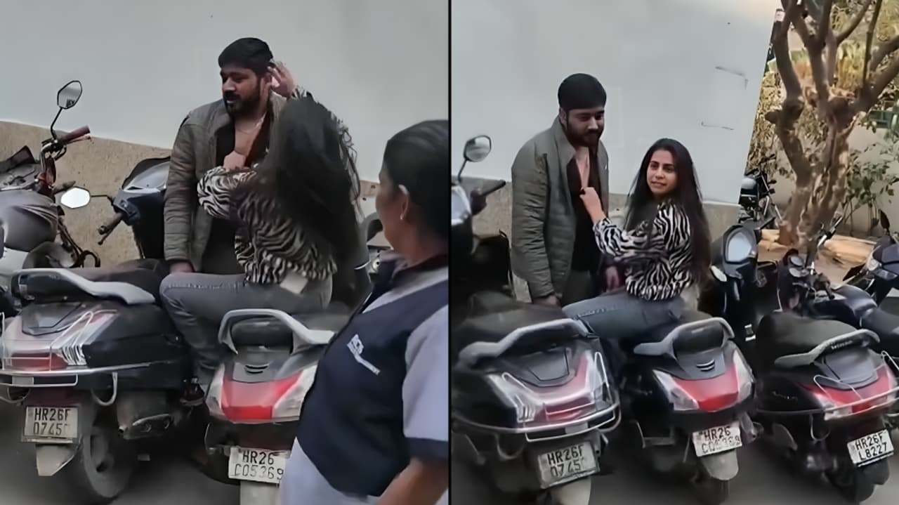 A viral video from Gurugram shows a woman repeatedly slapping a man on a public road while he stands silently. Bystanders record the incident and urge police action. Authorities have not issued an official statement.