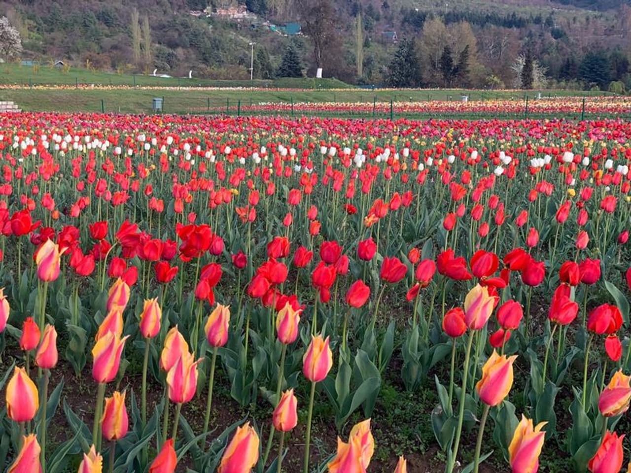 Tulip Garden is a spectrum of colours which features lakhs of tulips. Flowers have blossomed in the lap of Zabarwan Hills along the banks of Dal Lake in Srinagar city. Around 15 lakh flowers of more than 64 varieties are in full bloom nowadays in the garden.