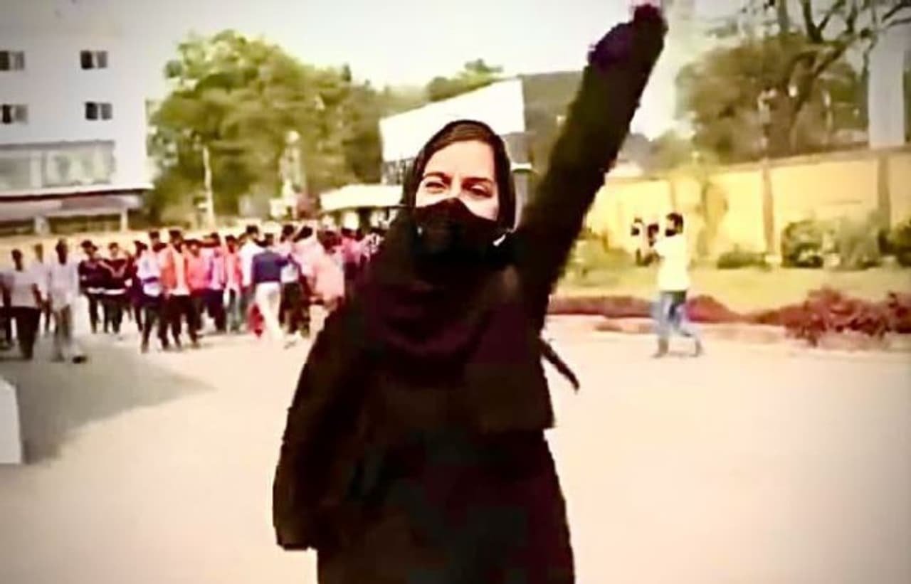 The video shows the girl student who came to college wearing a hijab being hounded by a mob with saffron scarves. The mob was chanting slogans like 'Jai Shri Ram'. The video showed the girl, fed up with the barbs of the mob, raising slogans herself of 'Allahu Akbar'.
