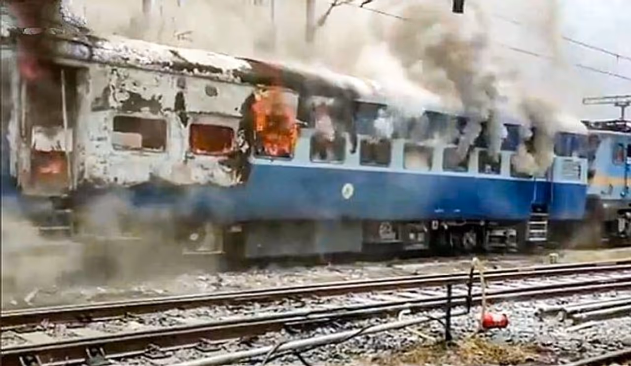 Image: Smoke billows out after youngsters set on fire a train in protest against the 'Agnipath' scheme, at Chapra Railway Station, in Bihar's Saran district, Thursday, June 17, 2022. The government on Tuesday announced a short-term recruitment plan to enlist young citizens into the armed forces. Photograph: PTI Photo