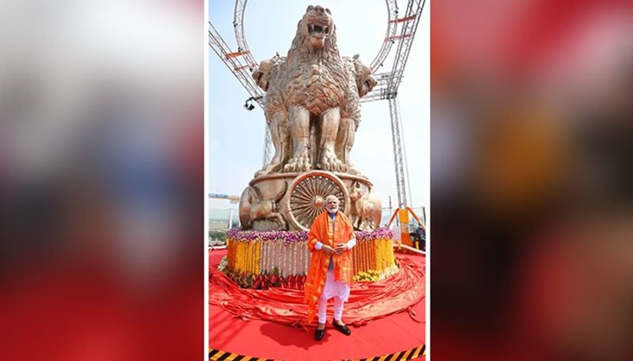 PM Modi unveils 9,500 kg, 6.5m long bronze National Emblem cast on new Parliament building