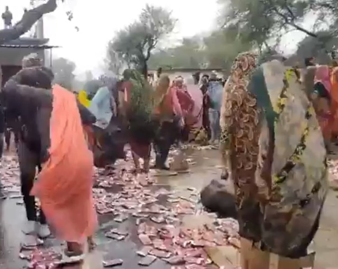 The women broke the locks of two liquor shops, entered the premises and damaged property inside. Bottles of alcohol worth several lakhs of rupees were thrown onto the road and smashed. Video footage shows women forcefully breaking bottles while shouting slogans.