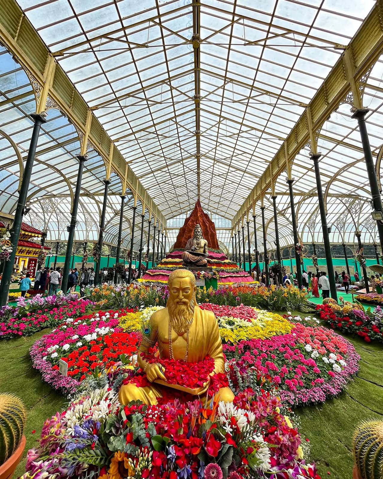 A Valmiki-themed flower show has been organized in the Glass House at Lalbagh. It depicts the Ramayana written by Valmiki and scenes from the epic. Thousands of species of flowers from India and abroad have been used.