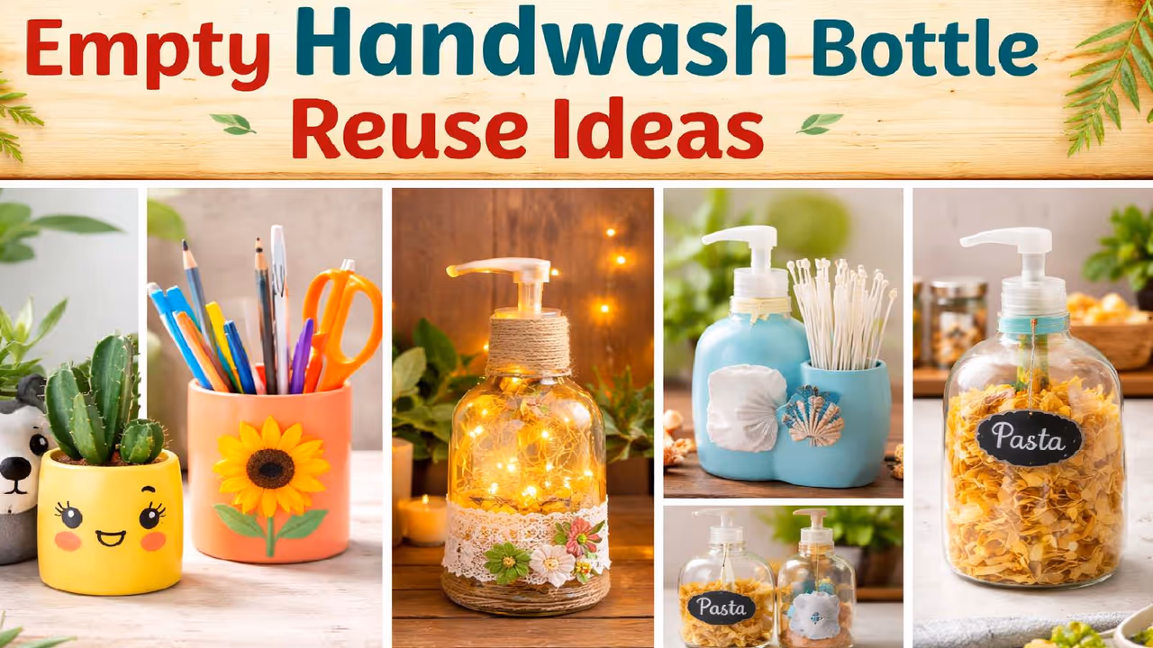 Empty Soap Bottle Reuse: Don't just throw away empty handwash bottles! You can turn them into stylish things like mini planters and bathroom organisers. These easy DIY ideas will not only make your home look great but also help you save some money.