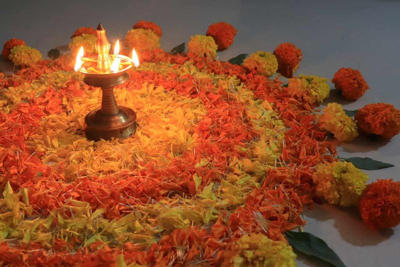 8. A great pookalam is an assimilation of design of assorted bright flowers, ideas, commitment, group work and perseverance.
