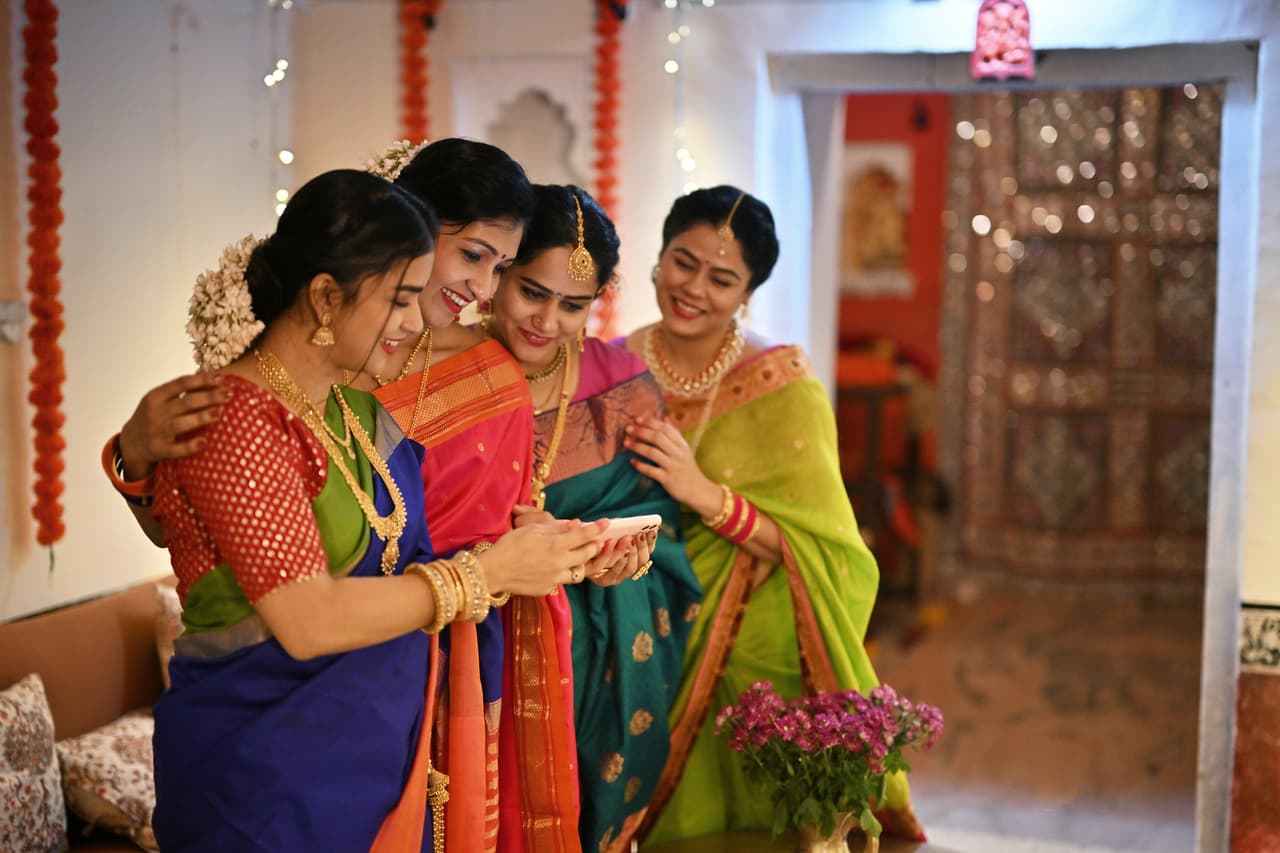 In many regions, women celebrate a turmeric and vermilion gathering. Married women apply turmeric and vermilion to each other and wish for lifelong happiness and good fortune. This tradition symbolises unity, respect, and shared prayers.