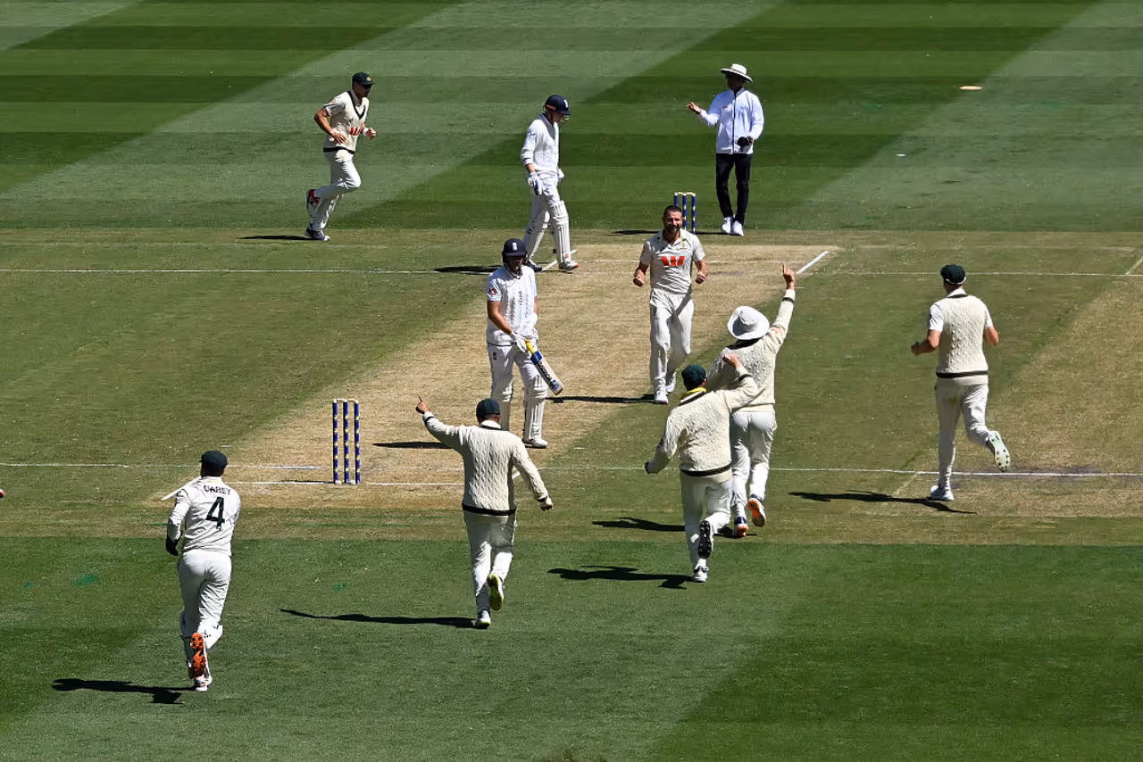 Assuming their first innings batting, England quickly collapsed to 16/4 in 8 overs before Harry Brook and Ben Stokes stitched a 50-run partnership to put the visitors’ batting back on track. After Brook’s dismissal, things went from bad to worse for England, as wickets tumbled at regular intervals, losing remainder of five wickets in just 44 runs, leaving them deep in trouble against a strong Australian bowling attack.