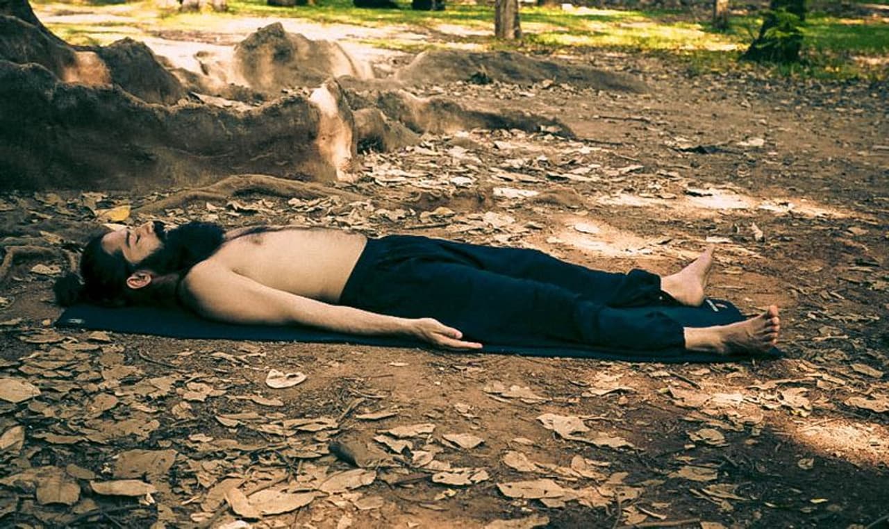 Later, bend your arms at the elbows with your palms facing the sky. Then rotate your arms at the shoulders place palms on the floor on either side beside your head.