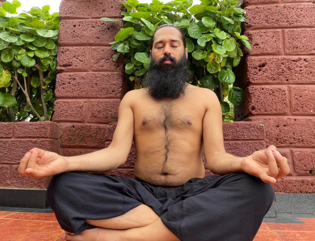 Padahasthasana: For this asana, start by standing in Samasthithi and then exhale, gently bend your upper body down from the hips and touch your nose to your knees. For this asana, you have to place your palms on either side of your feet.