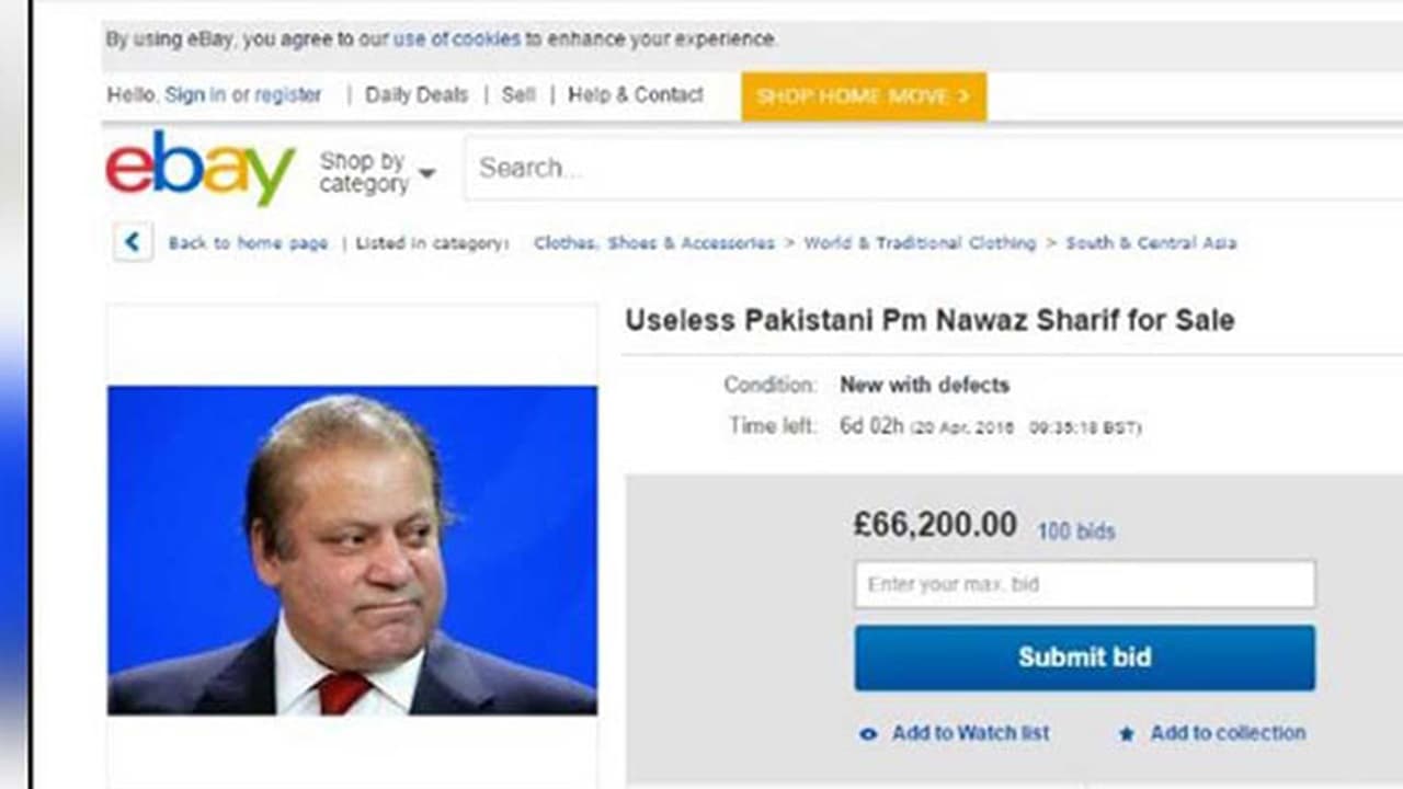 A UK-based eBay user has put Pakistan Prime Minister Nawaz Sharif on sale for for 66,200 pounds (Rs 62 lakh approximately), describing the politician as 'Useless Pakistani PM Nawaz Sharif'.