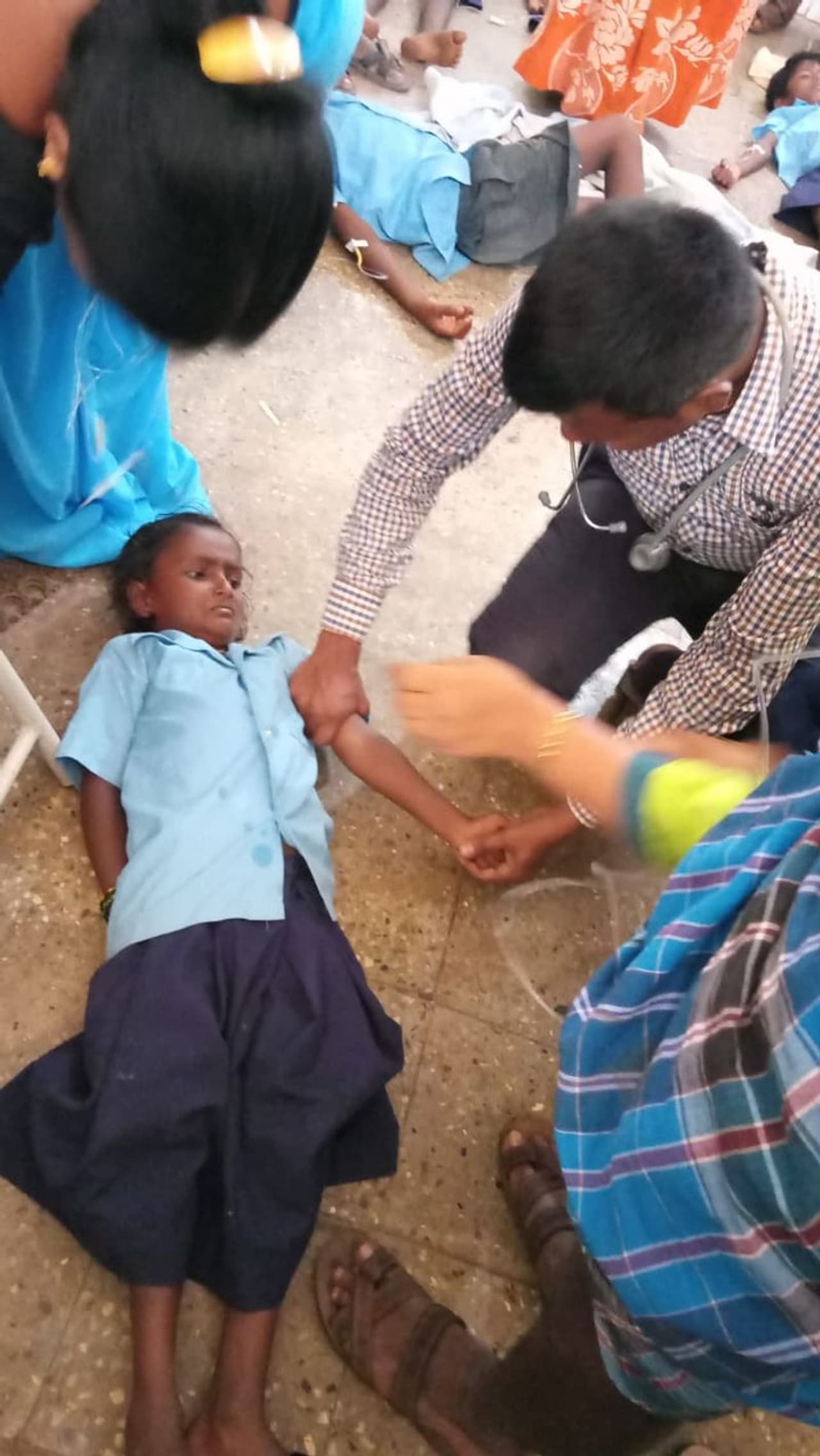 Over 250 students consumed the midday meal but about 60 students complained of stomach irritation. Due to the shortage of beds in the hospitals, most of the students were made to sleep on the floor, complained the parents of students who fell ill. The community health centre is said to have only 30 beds. As many as 3 students were made to lie on a single bed for treatment.