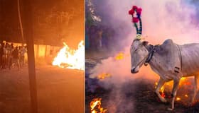 What was supposed to be a festive celebration turned tragic as a young boy sustained severe burns during Sankranti. The incident happened in Mandya, Karnataka, yesterday when the villagers were setting the hay on fire as part of tradition where they will let an ox run over the flames.