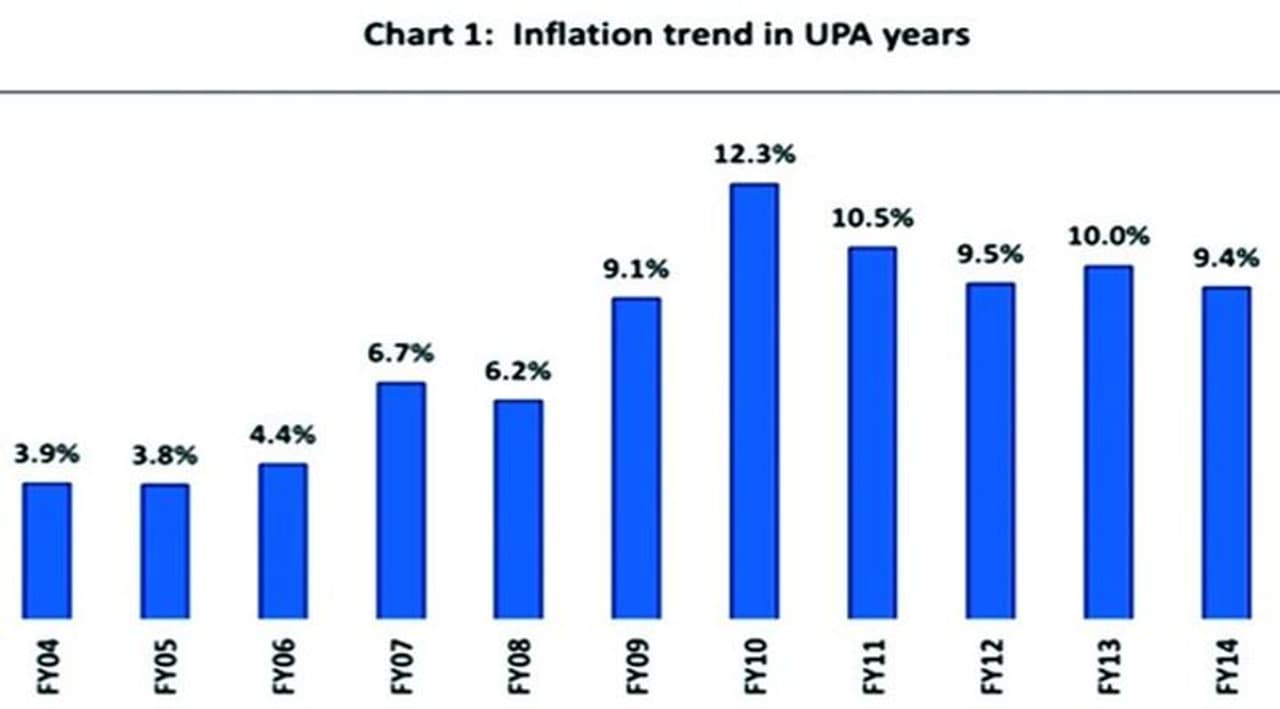 Throughout the Congress tenure from 2009-2014, the average inflation rate peaked at 10.4%, whereas under the ten-year Modi regime, it plummeted to 5.5%. Notably, a significant trend emerges when analyzing the periods of Congress and BJP governance: prices surged during Congress rule and remained relatively subdued under BJP administration, warranting further scrutiny by the Congress party.