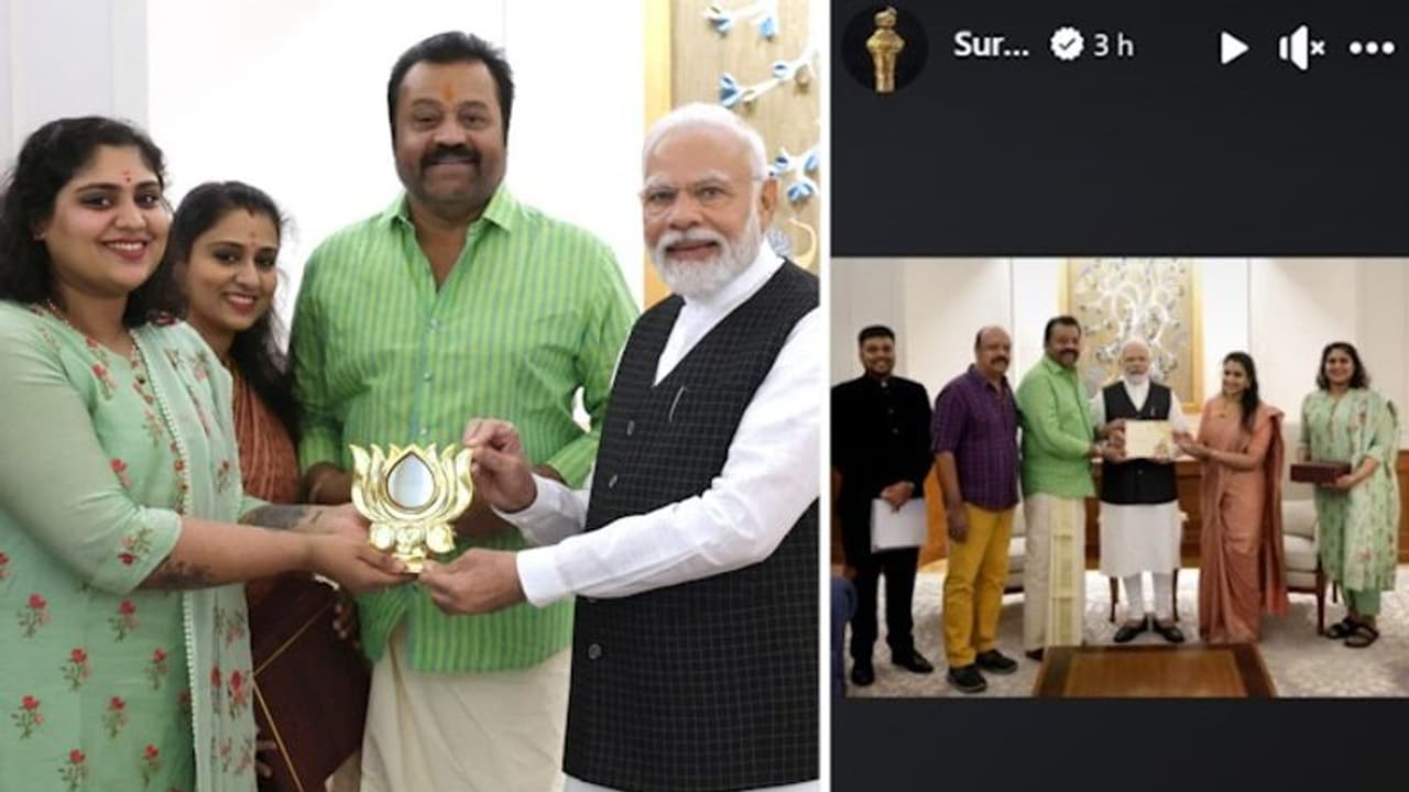 Actor-politician Suresh Gopi along with his wife Radhika and daughter Bhagya Suresh met Prime Minister Narendra Modi in New Delhi on Friday (Oct 6). The actor shared a photo with PM Modi on his social media, captioning it 'MODI, The Family Man. PARIVAROM ki NETA'.