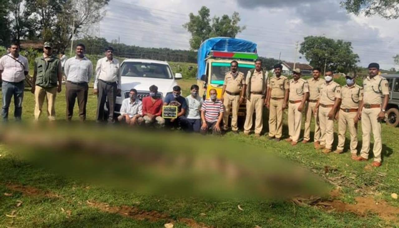 The five men were caught by the forest officials while they were stopped by the police for inspection of vehicles.