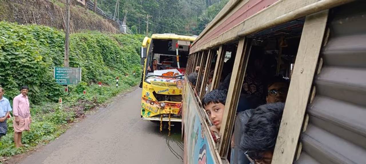 But then the Andhra bus hit Smithosh's bus at the rear end. Since the bus was not speeding, there was no impact, and Smithosh let it go, but it happened again, and he realised something was wrong. And that is when he remembered the burning smell he had caught a few minutes back. The third time, the bus came closer, Smithosh used the hand brake, and the pilgrims' bus came to a stop hitting the KSRTC bus, narrowly missing the deep gorge nearby.