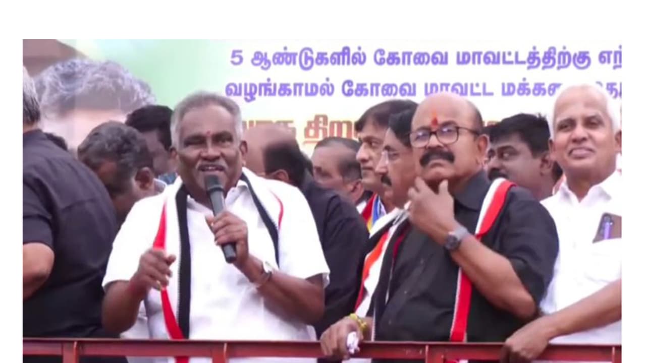 On the other hand, a protest was held in front of the Coimbatore South Taluk Office by the National Democratic Alliance (NDA) condemning the DMK government. The demonstration was attended by former minister SP Velumani, AIADMK MLAs, former BJP state president K. Annamalai and BJP Mahila Morcha national president Vanathi Srinivasan, among others. Vanathi Srinivasan alleged that parties were being lured into alliances using money and claimed that the Kongu region has always been their stronghold. She criticised Chief Minister MK Stalin, stating that he believed the BJP-AIADMK alliance would not materialise. She said opposition parties had united to defeat him. (ANI)