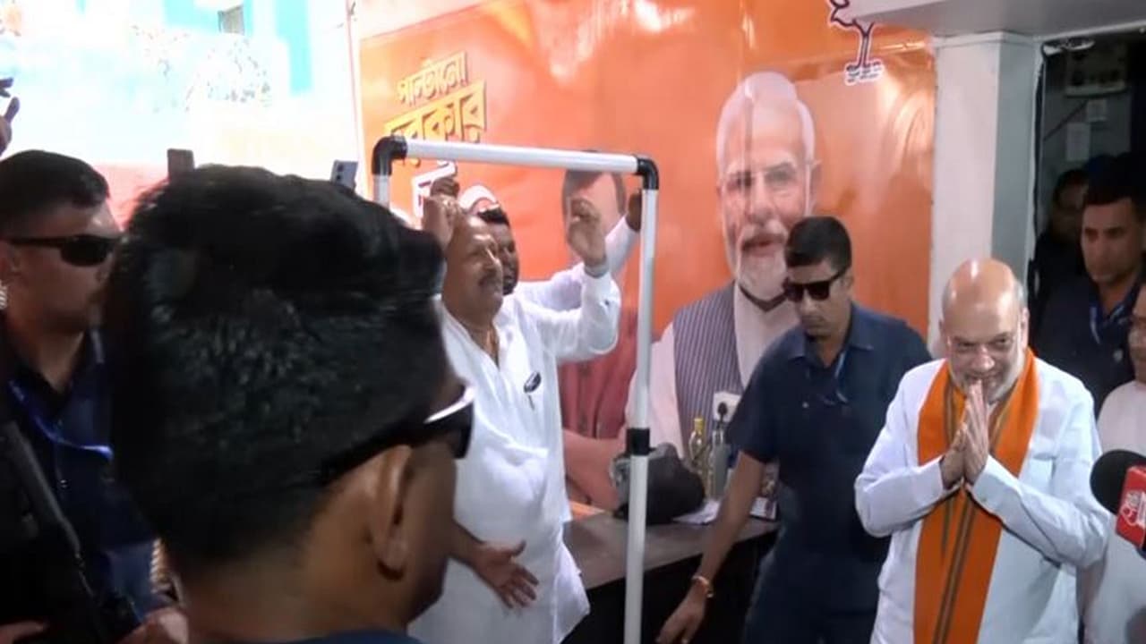 Union Home Minister Amit Shah held a meeting with BJP leaders in Kolkata ahead of the second phase of the West Bengal polls. His scheduled visit to Kalighat Temple was highlighted by candidate Swapan Dasgupta, who aims to defeat the TMC.