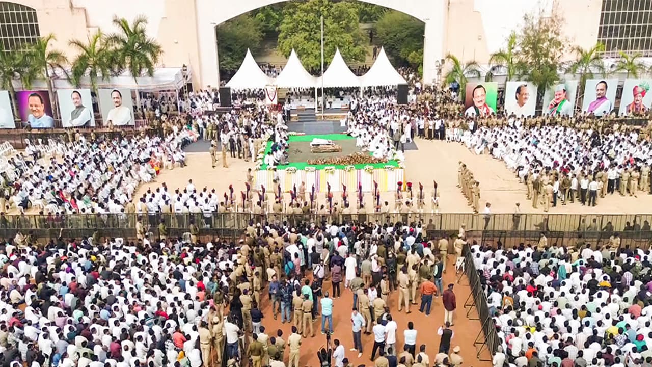 Shah, along with Union Minister Nitin Gadkari, Maharashtra CM Devendra Fadnavis and Goa CM Pramod Sawant, paid last respects to the NCP chief. Pawar's sons, Parth and Jay also performed the last rites rituals of their father. Sunetra Pawar, wife of Ajit Pawar and Rajya Sabha MP paid last respects to her husband. The drone footage showed a large crowd at the Vidya Pratishthan ground, where Ajit Pawar's last rites were being performed.