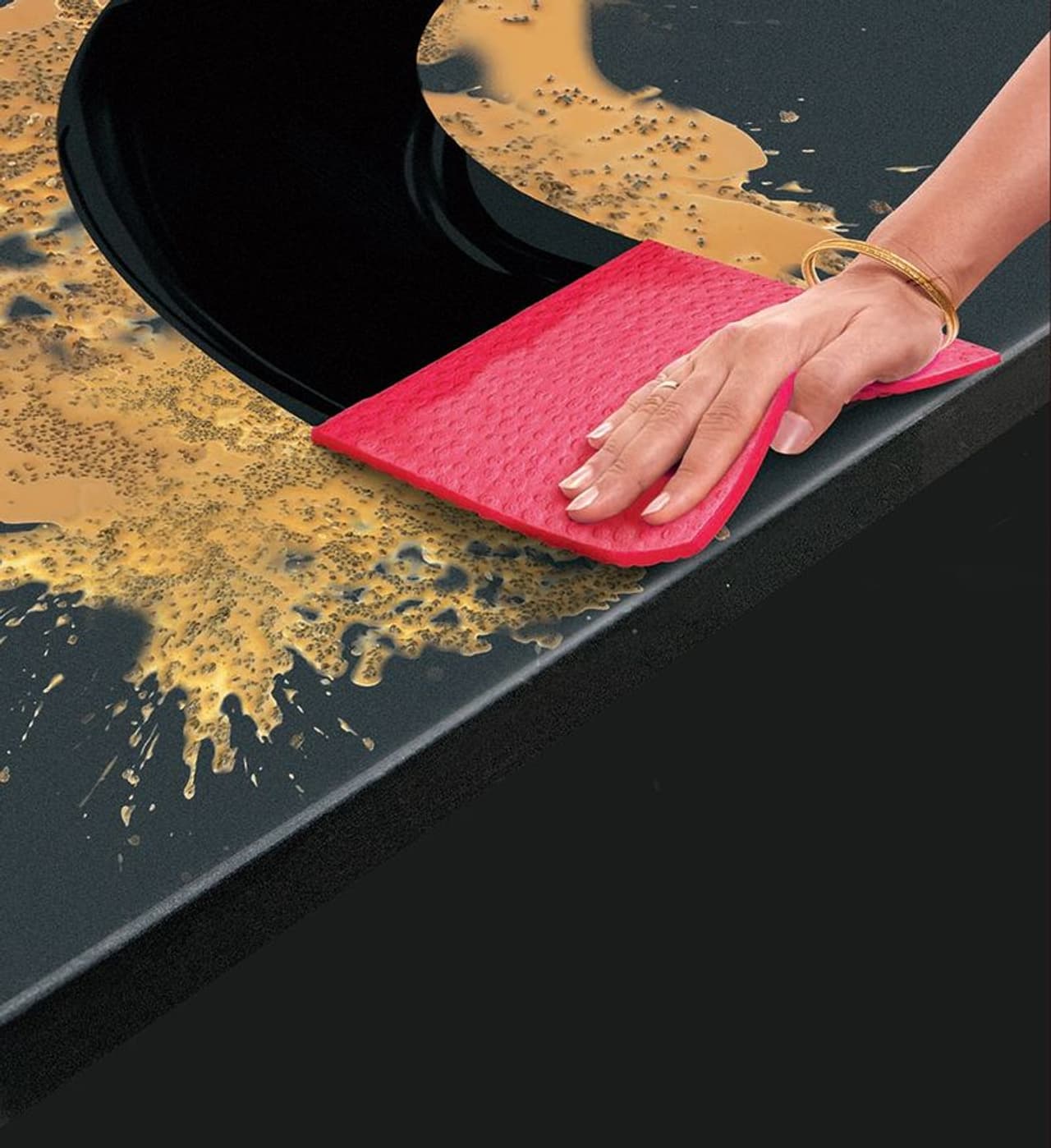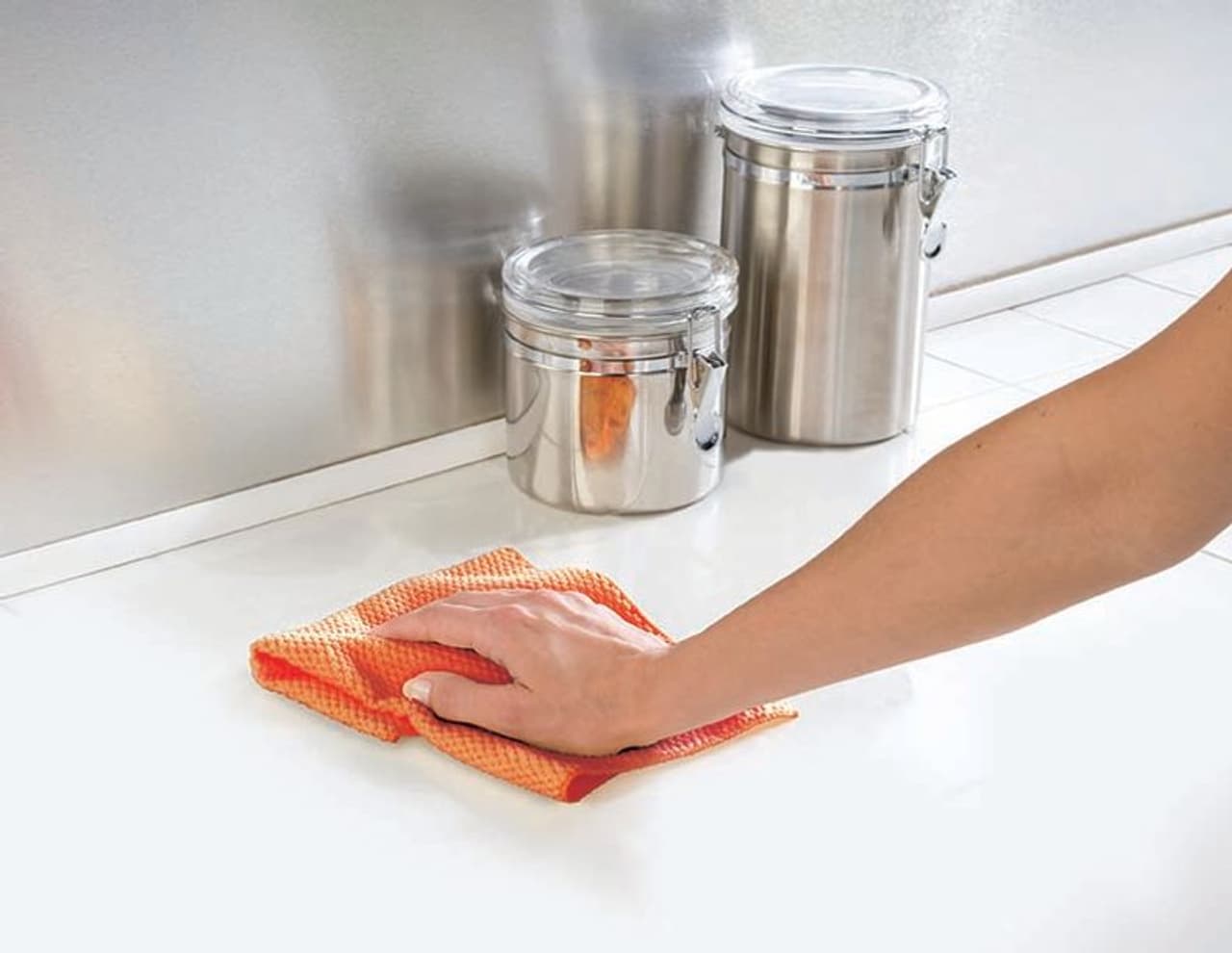 Use a broad-spectrum disinfectant for your floors and high-touch surfaces like doorknobs, light switches, latches, doorbell switches, toilets, taps and sinks. The important thing here is to use the right tool to thoroughly sanitize the surface. For example: using an old rag cloth across floors & counters won’t help. Use an adsorbent sponge wipe to magically wipe down any type of spills on your countertops and dining surfaces, a microfiber cloth with dust-attracting technology to provide scratch-proof, thorough cleaning for your screens and appliances, and last but not the least a tough pochha for floors.