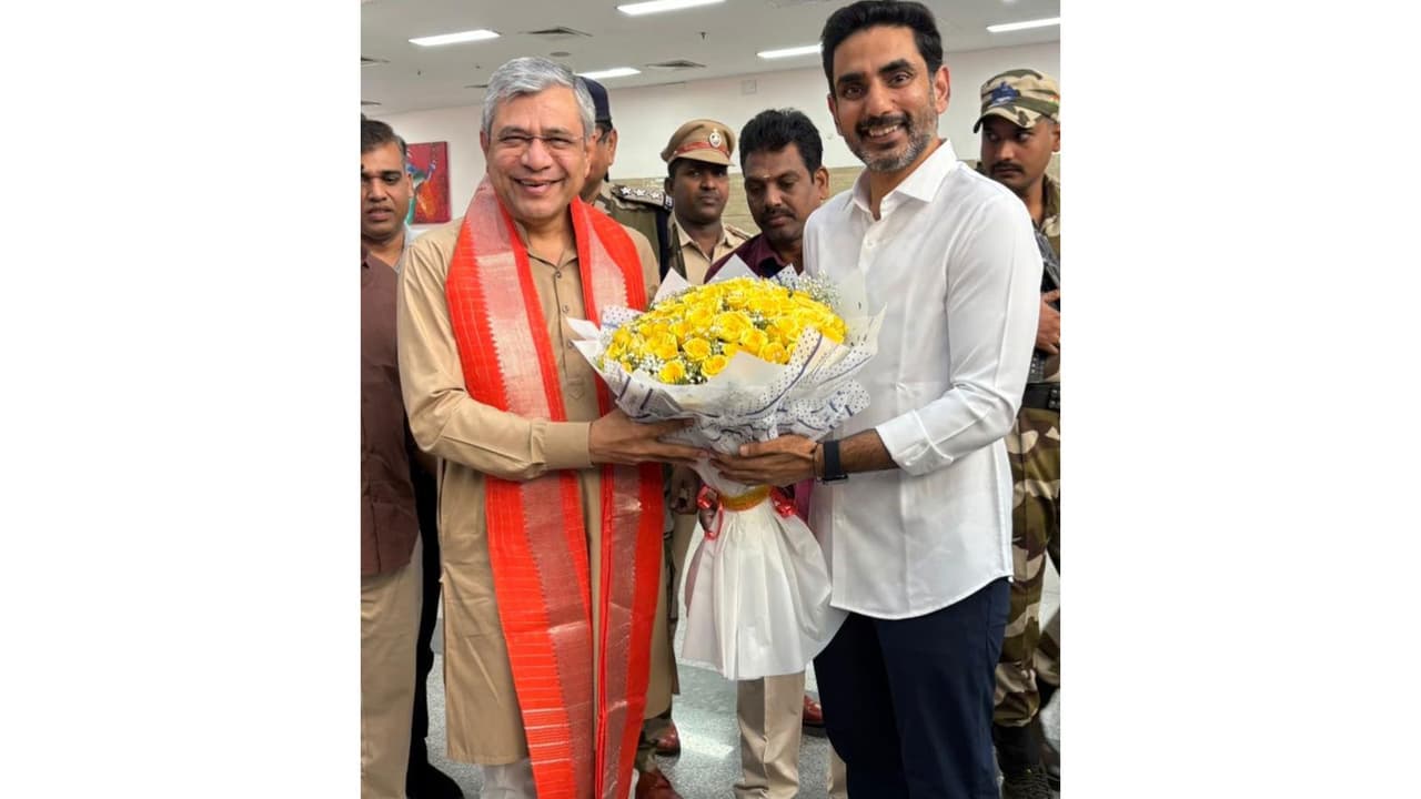 Union Minister Ashwini Vaishnaw on Tuesday arrived in Visakhapatnam to participate in the foundation stone laying ceremony of the Google AI Data Centre at Tarluvada in Anandapuram mandal. Minister Nara Lokesh and other Telugu Desam Party public representatives welcomed Union Minister Ashwini Vaishnaw at Visakhapatnam Airport. State Chief Minister N Chandrababu Naidu will also participate in the laying ceremony.