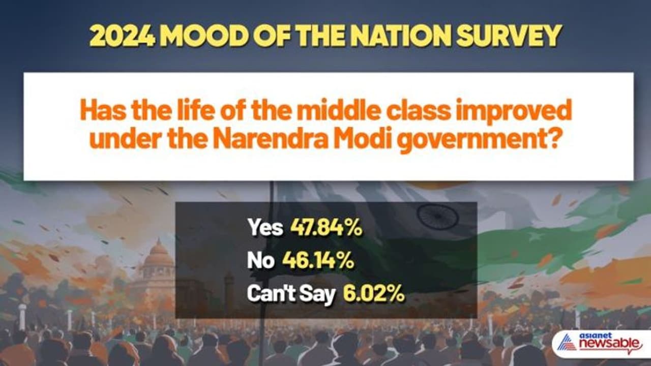 The middle class forms the backbone of this country. And when asked whether the life of the middle class had improved under the Narendra Modi government, the opinion was somewhat divided. While 47.8 per cent of respondents were of the view that the life of the middle-class segment had improved, 46.1 per cent felt otherwise. Certainly, this dataset offers some food for thought for both the Opposition and the ruling Narendra Modi government.