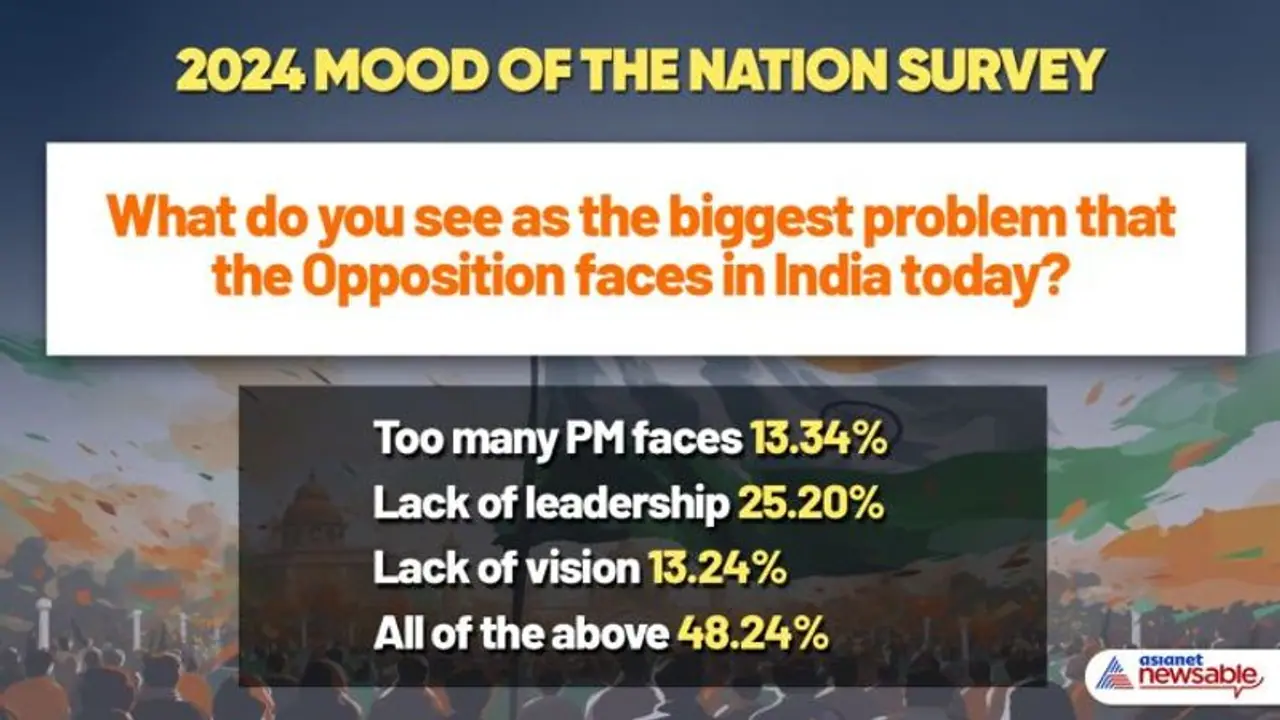 The Mood of the Nation Survey conducted by Asianet News Network indicates significant challenges for the Opposition, with widespread support for Prime Minister Narendra Modi and the National Democratic Alliance (NDA).