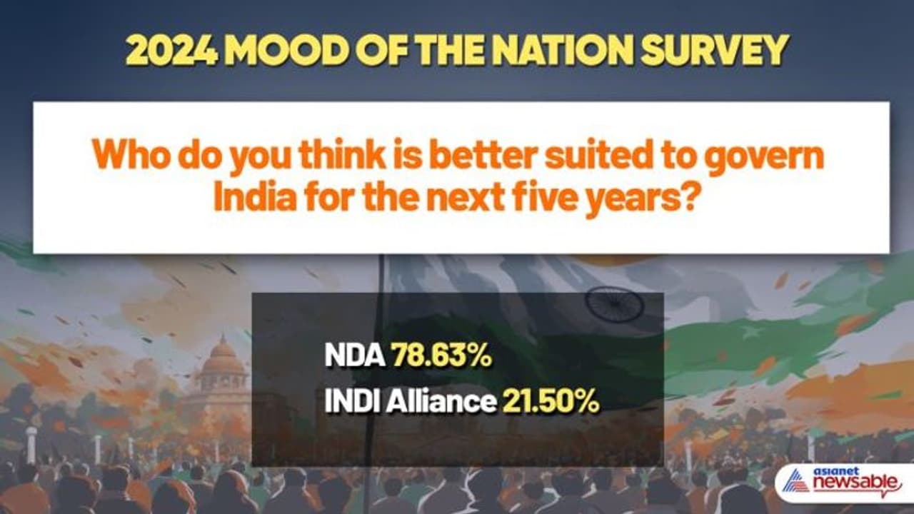 * Asianet News Network's survey shows that 79% of Indians prefer an NDA government over that of the INDI alliance.